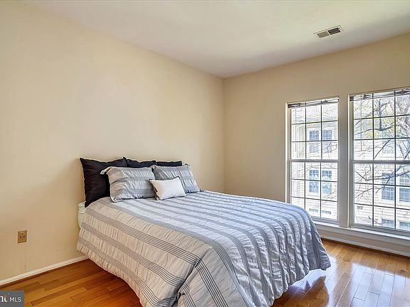 Photos Coming Soon! Light and bright corner condo features 9' ceilings, two charming balconies with pretty treed views, ideally located in Kentlands! Entry foyer leads to a large living room featuring hardwood floors, ceiling fan, attractive gas fireplace, a large mounted TV, and built in cabinet with shelving to hide components. Separate dining room includes French doors leading to a balcony, hardwood floors, and a convenient built-in glass front cabinet to display all your special glassware or showcase your collectables! The kitchen includes pretty maple cabinets with under cabinet lighting, stainless steel appliances with gas cooking, and granite countertops. There are two bedrooms on opposite sides of the living room, each with their own bath. The primary bedroom features hardwood flooring, built-in shelving, a large walk in closet and en suite bath. Second bedroom also has hardwood flooring plus two closets and private access to the second bathroom featuring a walk in shower. Additional separate storage area on ground floor of building. Private parking lot provides ample, no hassle parking for you and your guests. Be part of Kentlands and have access to fantastic amenities including pools, tennis/pickleball courts, basketball courts and clubhouse events. Conveniently located next to shopping, restaurants, theater, farmers market and much more!