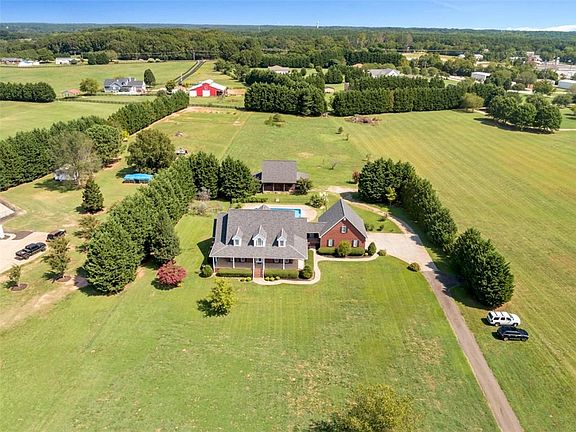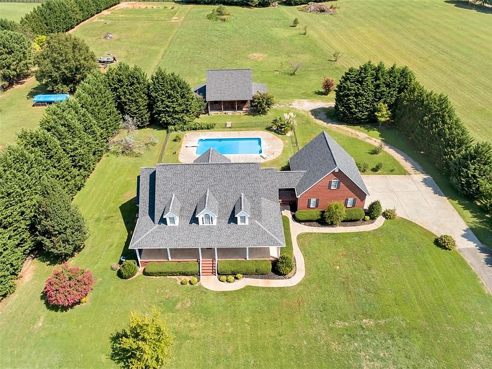 This beautiful brick home has 3000 heated & cooled square footage, sits on 3 acres, & has extra perks like a partially finished bonus room over the garage, an in-ground pool, and the coolest pool house you've ever seen. From the southern living like front porch, walk in to find a large entry and the dining room to your right. The dining room is perfect for entertaining a large crowd and cozy enough to enjoy a great dinner with family. The large kitchen was designed with efficiency in mind. With tons of cabinet space, this kitchen has great functionality and offers a breakfast nook with a bay window. This 2 story family room is sure to impress anyone with its propane gas log fireplace, built in bookshelves, & custom windows. Within the master suite is a walk in closet, double sink vanity, a jetted tub, walk in shower, & a bay window overlooking the large backyard. Also located on the main level is a guest bedroom, laundry, & a powder room. Upstairs, there is a full guest bathroom and 2 bedrooms that both have a window nook & built in bookshelves. For the buyer looking for STORAGE SPACE, look no more. This double door 2 car garage has PLENTY of extra storage space. The main floor of the garage has a storage nook and upstairs is a partially finished bonus room that has hinges on the walls to create tons of storage space BEHIND closed walls. For the Summer time lovers, be ready to invite your friends and family over for a pool party. The in-ground pool area also includes a lovely covered patio and a pool house with covered outdoor storage space on each side that will knock your socks off. Inside this "jailhouse inspired" cabin, you will fall in love with the wrought iron window grills on the doors and windows, the wood detail, the large bar, and the corner fireplace. It's time to envision your forever in this beautifully designed property. Call today for a showing!
