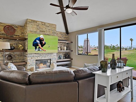 Views, Views, Views! Rarely available single story end unit home at The Courtyards in beautiful Desert Falls Country Club is now for sale. This home has been completely remodeled. It offers some of the best views in all of Desert Falls. Overlooking the 1st green, this is your chance to enjoy gorgeous panoramic mountain, lake and golf course views 24/7. Step inside to an inviting open floor plan with a decorative fireplace, upgraded cabinetry, bar, breakfast nook and a chef's kitchen with granite slab counters, center island, wine fridge and upgraded stainless steel appliances. The master suite is large with dual vanities, a shower and tub and a good size walk in closet. There is a separate laundry room, a front courtyard and a relaxing scenic back patio. Recent updates include new kitchen, bathrooms, floors throughout, windows and paint. Perfect for a full-time residence or a great vacation rental. Conveniently located in the heart of Palm Desert, Desert Falls Country Club offers 18 holes of championship golf, tennis, pickleball, clubhouse, restaurant, numerous pools & spas and a state-of-the-art fitness center. Call me for your private tour today!
