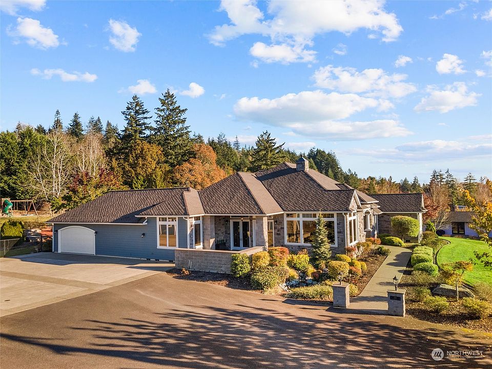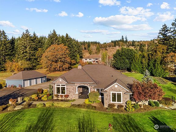 This stunning custom-built 3,366sf home will please even the most discerning buyer. Situated on 1.77ac, it's a short walk or golf cart ride to a 27-hole golf course. The single-level home has 3 bdrms, each w/ en suite bath & bathroom off the garage; a den/office, library, living rm & chef's kitchen, with double ovens and dual dishwashers. A wet bar sits adjacent to the formal dining rm. Many high-end touches throughout. The main living areas boast 12ft ceilings w/ 10ft ceilings in the remainder of the home. Enjoy a 900sf outdoor patio w/ fireplace and built-in BBQ. The detached 3-bay garage/workshop incl ½ bath & plenty of room to park your RV, boat & golf cart w/ extra room for hobbies. Close to I-5, schools, restaurants, and shopping.