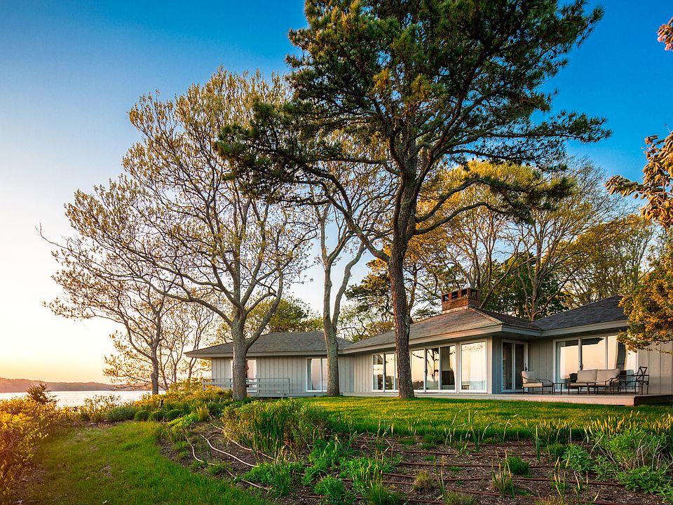 Sensational sunset water views from one-story modern cottage in prime East Hampton Village estate location with 300 ft directly on Georgica Pond and views to the ocean. Open cathedral living/dining/kitchen, master suite, guest wing with 3 bedrooms and 2 baths. Walls of windows open to waterside deck with forever views over the widest part of the pond. Ultra-private 1.9 acres - truly one of a kind. Unfurnished.