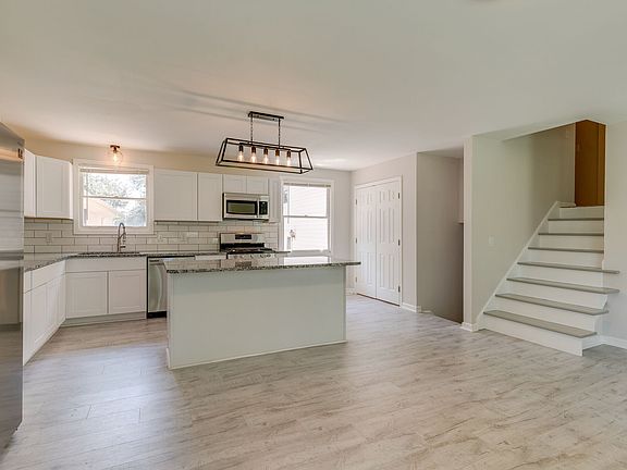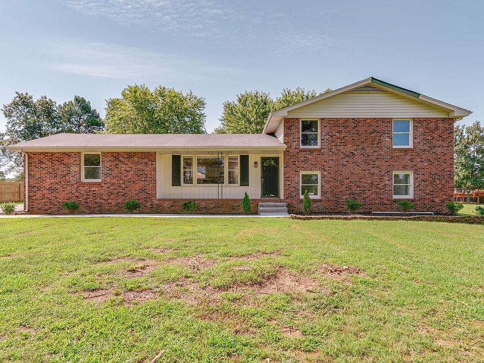split foyer completely renovated inside, new cabinets, granite, laminate woods floors, tile, 3 completely redone bathrooms, 4 bedrooms, formal dinning room open to kitchen and bar, den with fireplace with bookshelves, rec room upstairs, office or 5 th bedroom , utility room up , fresh paint super large rooms, brick home with garage and carport, storage, one ac unit new, backs up to golf course, many new features/trim is already put back on in the front