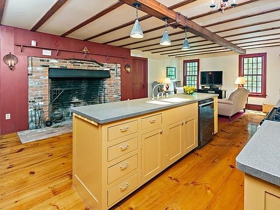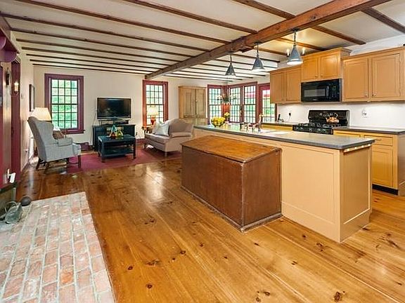 - Kit Dscrp: Pantry, Flooring - Wood, Dining Area, Countertops - Stone/Granite/Solid, Cabinets - Upgraded, Deck - Exterior, Kitchen Island, Fireplace, French Doors, Open Floor Plan, Ceiling - Beamed, Country Kitchen, Gas Stove, Lighting - Pendant
