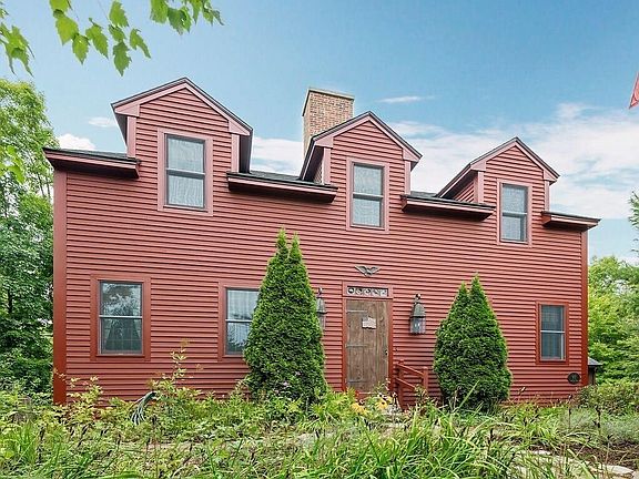 Private, reproduction Colonial on 19.21 acres! Nestled in the trees, a long lovely driveway welcomes your guests to the former Yankee Cricket Inn B&B. Native fieldstone entry with picturesque woodland views from every room & hidden gardens, patios & fire pit area. Fantastic brick fireplace in the spacious Keeping Room, eat-in kitchen w/custom cabinets, commanding center island, Corian counters, wide pine floors, gas stove & walk-in pantry. Awesome new back deck leads to a quaint private sun room, laundry room & HUGE bonus room/artist studio w/custom cabinets, craft island & built in desks (would make a great home school room). Completing the 1st floor is a home office/library with fireplace & custom bookcases, 1/2 bath, and separate dining room w/built-in breakfront cabinet. The 2nd floor has 4 large bedrooms, 2 w/private baths (2 w/shared bath and in-room separate sinks). Finished lower level w/home office,3/4 bath,2 private entry rooms,wine/storage room,workshop & 2 car garage!