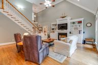 - Features: Books, Entertainment Center, Fireplace, Floors-Hardwood, Molding, Ceiling-Vaulted, Ceiling Fan, Recessed Lights