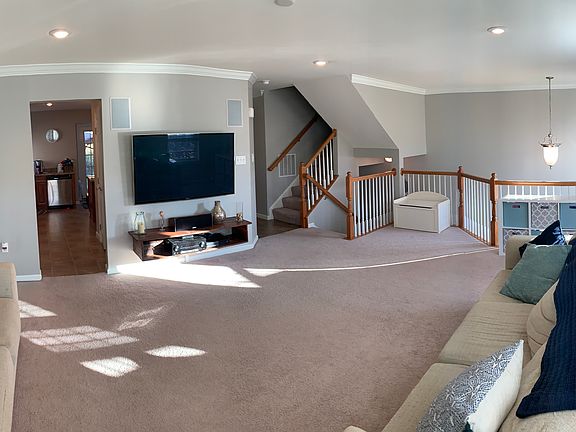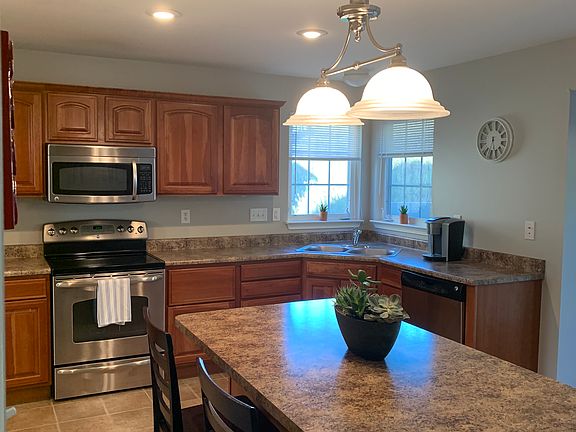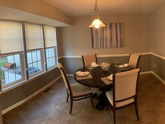 BEAUTIFUL - Spacious end unit with 2' extensions in living room, dining room, kitchen & master bath. Upgraded cherry cabinets and stainless steel appliances in kitchen with pantry. 6' custom built island - additional seating for 4, cabinets underneath. Kitchen opens to dining area with chair rail. Wonderful OPEN FLOOR PLAN. Recessed lighting in living room, kitchen & gameroom. Cathedral ceilings in upper level. MSTR Bedroom w/walk-in closet and luxurious ensuite (double sinks, large soaking tub and separate shower). All bedrooms have ceiling fans w/lights and remotes. 2nd floor laundry. FINISHED GAMEROOM with bar optional. Very PRIVATE wooded backyard is great for entertaining with extended large patio and lighted cabana. Additional parking space in driveway and garage has built-in storage. Surround sound also built in. Very low HOA including grass cutting, landscaping and playground. Newly painted. Ready to move in! A MUST SEE!
