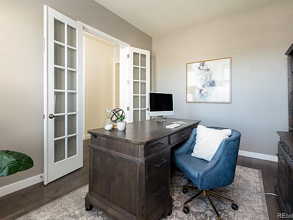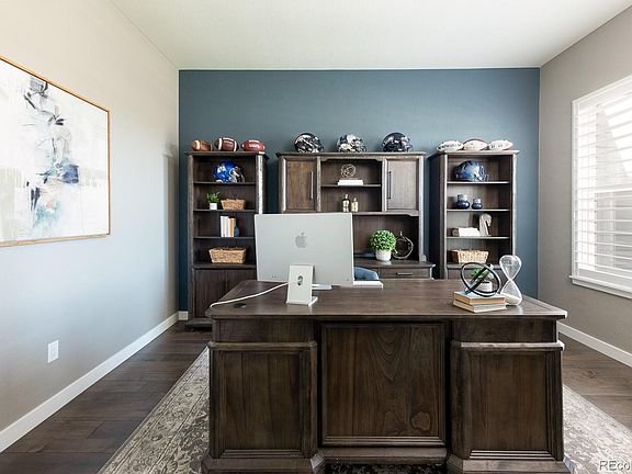 Experience this expansive custom Castle Pines ranch with an incredible floor plan, featuring 5 beds/6 baths + an office, gym, and home theater. Coffered ceilings enhance spacious living and dining rooms which share a see-through feature fireplace, connecting the two spaces near the sleek wet bar w/ mini fridge. Gourmet kitchen includes top-of-the-line stainless appliances, a stylish hood, an oversized island w/ beautiful slabbed quartz and a walk-in pantry. Luxurious primary suite includes a bonus retreat area, along w/ a spa-like bath w/ double showers; pass through the walk-in closet to the conveniently connected laundry room. Two additional main floor bedrooms each w/ en suite baths and walk-in closets. The basement has been exquisitely finished providing space for entertainment, fitness, games and more. Lounge in the lower living room w/ electric fireplace, space for games and separate dry bar. Stunning wet bar made w/ custom wood cabinetry, wine rack, mini fridge, shelving, mirrors, stone features and a waterfall island provides an amazing space to unwind and entertain while enjoying the decked out Home Theater accessed through custom barn doors. Another custom wooden door, disguised as shelving/cabinets, opens to a hidden room/storage area. Additional storage room is also connected to the home theater. Second primary suite in basement w/ en suite bath, double vanity and walk-in closet, as well as another bedroom and a 3/4 bath. Custom glass double doors open into huge, fully-equipped home gym. Currently used as a playroom, a room enclosed w/ French doors and glass windows would make another great office space. Smart Home Features provide security and ease to this home; see private remarks for inclusions. Enjoy the front yard landscaping, while having more time for life w/ a low-maintenance backyard, landscaped with turf and rocks. This impeccable home sits in a cul-de-sac, provides ample storage space, and combines beauty with convenience and fun.