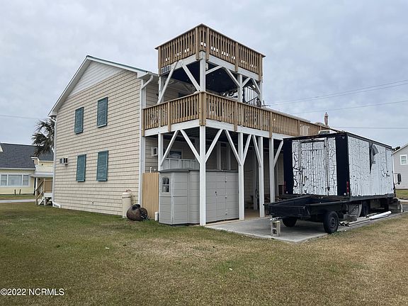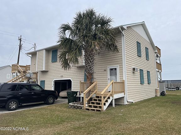 INVESTMENT! Buy 2 for 1 in this rental income property at the beach! 2nd story is 2Br, 2Ba and lower level is 1Br Studio Apt, single garage + 2 flex-spaces. Renovated 2003. Walk or bike to beach access & restaurants! Second Floor offers an open floor plan, expansive upper deck, including a hot tub, roof deck & view of Bogue Sound! Granite counters, backsplash, fireplace & attic storage. Master suite has a walk-in closet, vanity area, large bathroom with a jetted tub, marble shower & bidet. Metal roof added in 2007 & HVAC in 2019. Lower level offers a studio apartment complete with kitchen, living room combo & a fully updated bathroom. A single garage separates the studio apartment from additional 2 rooms, that are heated/cooled & is flex-space for your home offices, workshop or storage, or whatever you choose! Most furnishings can be included! Has parking pad for sm. boat, No HOA fees, septic permit is for 3Br system. Turn-Key, So act fast for this one!