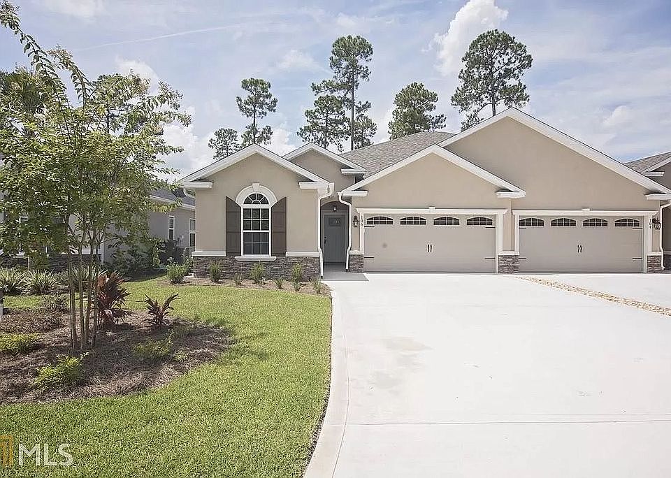 Beautiful stacked stone and stucco exterior house features 3bed/2bath home with 2-car garage and large yard. Wood like tile floors throughout the duplex and crown molding in the main living area and master bedroom. The great sized kitchen features an island with room for 4 stools, a walk-in pantry, granite countertops, subway tile backsplash, and 42’ custom cabinets. GE stainless-steel appliances. Double kitchen sink also has a garage disposal. Large owner’s suite provides a spa-like atmosphere with a lovely tray ceiling, plenty of room for a king-sized bed. There is a large walk-in closet with shelves. Completely tiles master bath boasts a 6 foot walk-in shower, soaking tub, and dual vanities. Roomy bedrooms for the children and company that can hold either king or queen sized beds. Double door closets in the bedrooms. Spacious laundry room with shelf. Enjoy down time on the screened in porch or just a two minute walk to the playground and walking path around the pond. Garage loft is ready to store your holiday or seasonal items with entry from the garage. The lawn care is included in the HOA fees ($920 yearly). Also included in fee is the water used for lawn irrigation and use of the community pool via key cards. There are custom blinds throughout. Also, includes a water softener. 912-399-7390