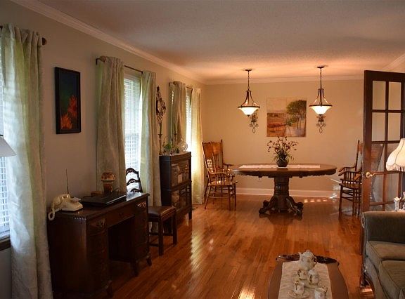 Pristine, one-level, brick home - recently updated! 3BR, 2BA, living room, formal dining area, lovely kitchen with tile floors, stainless appliances - refrigerator to remain! Breakfast area, large laundry room with utility sink. Den has flue that could be connected to a wood burning stove. Master suite has walk-in closet and full bath. Cozy sunroom overlooks landscaped, fenced backyard. New in the last 4 years: Roof, windows, gutters and soffit, paint, flooring, appliances!