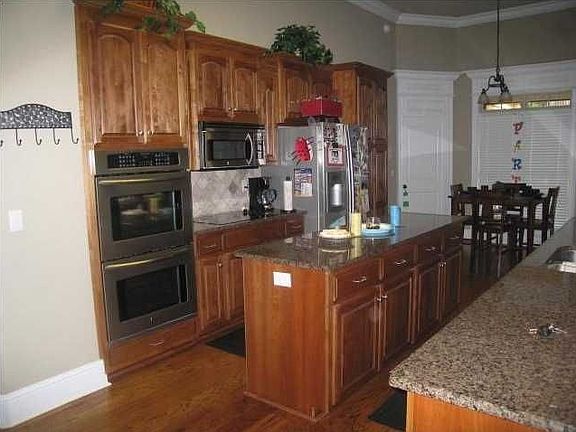 Lease Option Available great price Super open floor plan. Heavy crown molding and trim, kitchen with granite counters, island, eat-in kitchen, pantry, Master bath, dbl vanity, tile shower with dbl shower heads, screened porch, Security system, surround sound, sprinkler system front and back. 288294