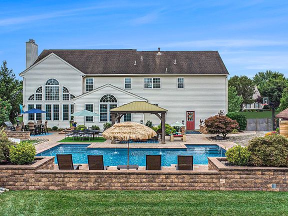 Step into luxury at 106 Burgess Road in Barrington Estates! From the backyard oasis to the designer touches & bonus space on the interior, this property is a dream come true. Imagine mornings on the front porches and evenings entertaining around the pool - every square inch is a masterpiece. When you open the front door to this executive home, you’ll find soaring ceilings, hardwood floors, custom millwork, gorgeous fixtures, fireplace, and large windows that fill the space with natural light. The chef’s kitchen is open to both the great room & dining room at the rear of the floorplan. The kitchen features granite countertops, stainless appliances, a Wolf cooktop, a large pantry, floor-to-ceiling cabinets, a five foot statement sink with dual faucets, and a massive island with seating for a crowd. Just off the dining room, you can grill up dinner on the paver patio while guests relax under the pergola or take a dip in the amazing pool. The separate pool house has a changing room. The rest of the fenced-in backyard offers plenty of space for games and your garden. Head upstairs to find all four bedrooms. The primary occupies its own wing and boasts tray ceilings, a sitting room and two walk-in closets. The ensuite includes double sinks, a corner soaking tub & a separate tiled shower. The three spacious guest rooms share the hallway bathroom with dual sinks. The 3,654 sqft floorplan also includes a dedicated home office, a bonus den and a laundry room with tons of storage. Don’t forget about the side-entry 3-car garage, too. Still need more space? Head down to the finished basement, complete with high ceilings, LVP floors, a kitchenette, a homework area, a rec room, a full gym with infrared sauna, and a powder room. Lots of potential for another bedroom, too! Barrington Estates is an established neighborhood that’s zoned to the top-ranked Perkiomen Valley school district. You’ll be close to the Perkiomen Trail, golf clubs and all the shopping & dining along W. Ridge Pike and Rt. 422. It’s an easy commute to Philadelphia & the airport is less than 40 mins from your front door.