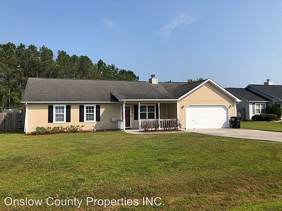 - Well maintained 3 bed 2 bath home conveniently located near the beaches and the back gate to the base. This home is nestled in a cul-de-sac and offers a huge fenced in back yard. When you walk up the front door you are greeted with a nice covered porch, perfect for our carolina evenings. Open the front door and you have a nice open living room complete with wood burning fireplace. The kitchen has all stainless appliances and there is also a dining area off the kitchen. All bedrooms are painted neutral colors and go with all decor, pets are negotiable! Come check this one out! (RLNE4997704)