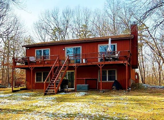 POND FRONT WOOD SIDED BI-LEVEL HOME ON .84 ACRES-MILFORD! Walk out your back yard to a beautiful pond for fishing, boating and more...Featuring 3 Bedrooms, 2.5 Baths, Living room with beamed cathedral ceilings and brick fireplace, kitchen with appliances, MOVE IN CONDITION! Perfect for a full-time home or vacation getaway! Located at the end of a quiet cul-de-sac on an idyllic pond and adjacent to unbuildable vacant lot! CALL TODAY TO SEE AS THIS PONDFRONT HOME SURELY WON'T LAST! LOW TAXES 3700 YR! DELAWARE VALLEY SCHOOL DISTRICT! Brand new thermostats, hot water heater and sliding doors!