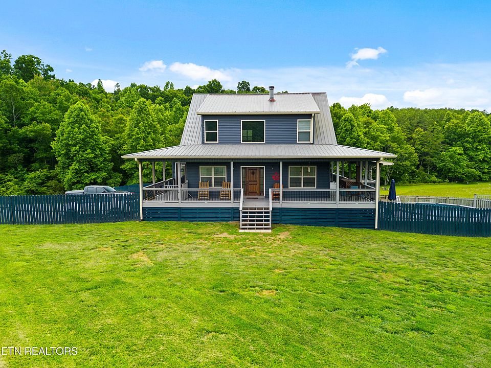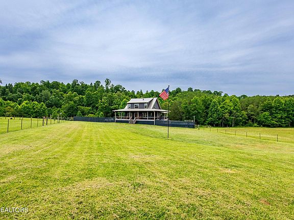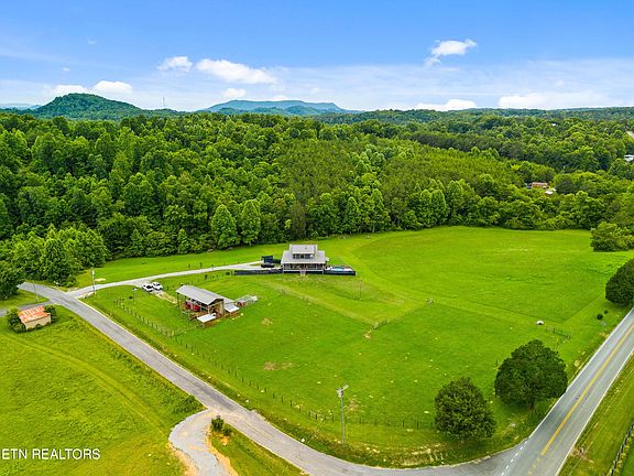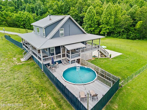 This gorgeous home on 16.43 acres in a beautiful country setting with mountain views and a creek is waiting for you. The acreage offers multiple fenced areas for yard/pasture use, a sitting area with fire pit and solar lights by the running creek, hiking trails on the wooded areas with great hunting, additional build sites if you want to expand and a fence to show the boundaries everywhere except along Reagan Valley. The custom built, one-owner home is truly unique. A wrap-around, covered porch greets you as you enter the main living area and see a 2 story stone fireplace. The chef's kitchen features an abundance of storage and counter space, a huge island with bar for entertaining, pantry cabinets and a double oven. The open floor plan flows from living to kitchen to dining area and connects to the porch. You also have the laundry with half bath that leads to the rear deck and serves as a pool bath. The main bedroom has a fireplace, private access to the deck directly to the hot tub and a beautiful en suite with double vanity, custom tile walk-in shower and spacious closet. Upstairs offers a loft area perfect for a home office with views for days, a huge storage closet, 2nd full bath and a large bedroom. The basement could be an in-law suite, vacation rental or another master. You have a huge bedroom, full bath, walk-in closet, another massive storage room, kitchenette, living room with doors out to a covered patio and access to the basement garage. The barn has a tack room and separate electrical box to provide a 50 amp service for RV hook-up, plus water. It is tall enough to accommodate a large RV for covered parking. Seller will leave all the trusses and materials to finish out the rest of the barn should you choose to do so. There is also another 50 amp hook up off the lower level concrete patio. The saltwater pool provides endless hours of fun for everyone with very little maintenance, or you can relax in the hot tub.