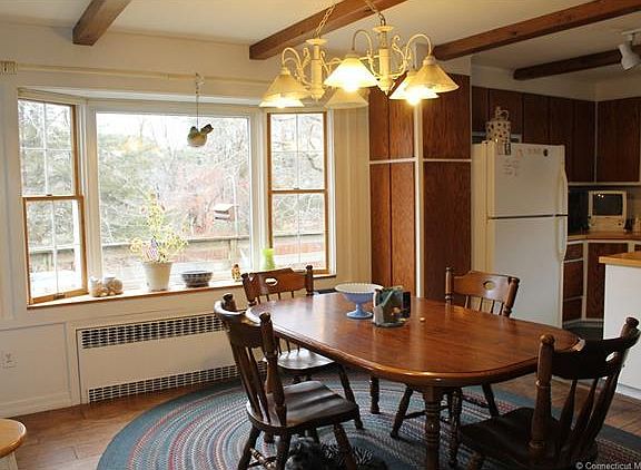 This Classic Colonial offers spacious rooms for the whole family! First floor master bedroom addition with heated sun porch, eat-in kitchen/dining area with fireplace and bay window overlooking massive deck, and four over -sized bedrooms on upper level. 1st floor laundry, new energy efficient gas furnace, 2 yr old roof, updated electric. Beautiful yard with flowing brook backs up to the reservoir and walking trails.