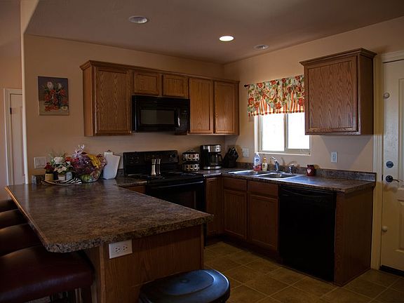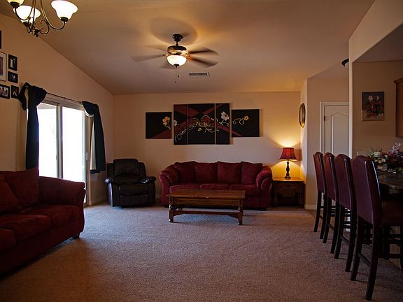 This cute 3 bed 2 bath stucco home, built in 2010, has been gently lived in and features an open floor plan with a master en-suite. There is access to the covered patio from both the living room and the master bedroom. Home has a cement tile roof, vaulted ceilings, 1,135 sf of living space, ceiling fans, landscaped in the front and fenced in the rear. Great starter home, or VRBO ~ give me a call to set up a showing.