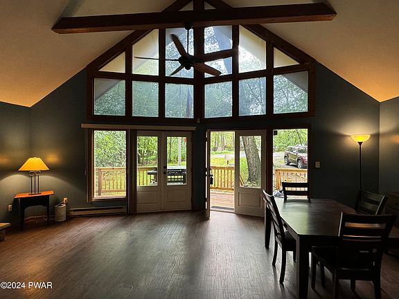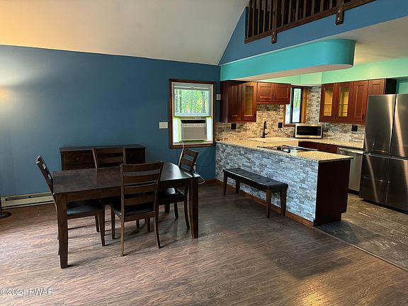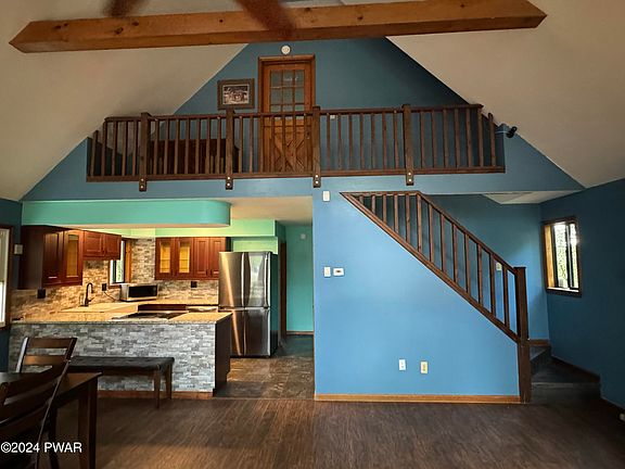 Affordable Chalet nestled on a double lot in a culdesac location ready to be occupied. Featuring 3 bedrooms, 2 baths, open floor plan, cathedral ceilings, modern kitchen with farmer sink and stainless steel appliances and unfinished basement with outside entrance. Primary bedroom suite on the second level with full bath and 2 first floor bedrooms on the main level with full bath. Enjoy the large open floor plan with pellet fireplace in living/dining area or sit at the counter to enjoy a snack or meal. Roof is only 6 years old. Located in the ungated section of Wild Acres with easy access to NY and NJ.