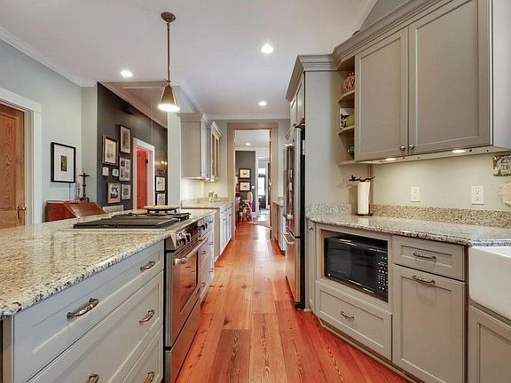One of the most sought after locations in Old Town, Bay St. Louis. Water view and three blocks from the Municipal Harbor. This historic home has it all. High Ceilings, custom mill work, beaded board wainscoat, beautifully restored heart pine floors throughout, cypress doors, gourmet kitchen, with stainless Jenn-Air appliances and dual fuel gas range, ice maker and wet bar. Large den and dining room, custom tile work in bathrooms. Walk in shower and soaking tub in Master Bath, large walk in closet, exquisite wallpaper, tankless instant water heater. Carriage house with 360sf of living space with a kitchenette and full bath. Professionally landscaped and beautiful brick patio. A must see!