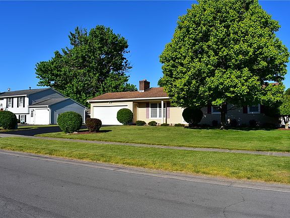 Very well-maintained ranch in a quiet Greece neighborhood, with plenty of space for a family. The eat-in kitchen has ample room to cook and eat. The living room is very cozy with a fireplace. This property features a large enclosed porch in the back for entertaining, as well as a partially fenced backyard. Beautiful two car garage with an attached shed for storage/workshop and another shed in the backyard. Finished basement with a full bath and plenty of storage. Laundry hookups on the first floor and in the basement. Delayed showings until Wednesday, 5/31 at 3pm. Delayed negotiations until Tuesday 6/6 at 3PM.