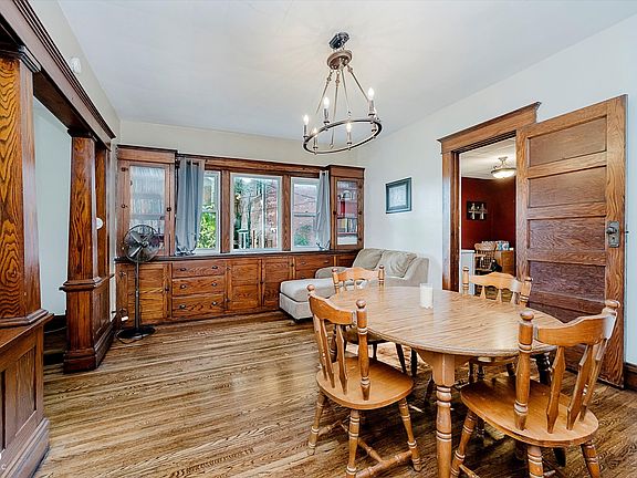 Big covered front porchFormal dining roomWarm and inviting layoutGorgeous woodwork