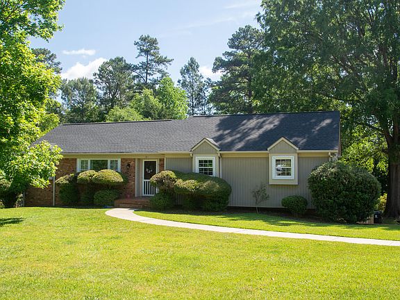 Fantastic brick ranch on over 1/2 acre with walk out basement. Enjoy ample parking and fenced back yard. Huge raised deck. Primary suite has ensuite bathroom. Second large bathroom for bedrooms 2 & 3 and guests. Updated appliances in kitchen, everything conveys. 2 gas burning fireplaces. Lovely lot with huge trees and plenty of green grass. Easy care and maintenance. Finished walkout basement currently used for bedroom but plenty of space for second living area, game room, playroom or home office. Recently refreshed with some new paint. Hardwood floors. Close to schools and downtown Sanford. Easy access to 501 S.