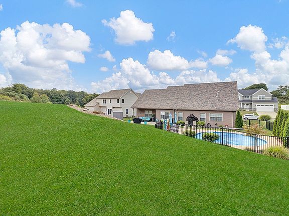 Truly 1 level living! Looking to downsize but not ready for condo living – we have the house for you! Custom built in 2017 this stunning 3 BR (plus den) 2 BA RANCH home boasts striking features including an open floor plan w/cathedral ceilings, floor to ceiling stone fireplace, kitchen w/granite counters, breakfast bar w/seating & SS appliances, dining area has coffee/wine bar w/built-in cooler. Cathedral ceilings lend architectural flair to the master BR suite which features a walk-in closet & attached bath. Additional BRs share a full bath while a home office is made private with French doors. Main floor laundry & attached 2 car garage w/overhead storage complete the home. Lots of space & tons of fun are enjoyed outdoors where a heated inground pool, patio & nice size yard lends space for outdoor recreation. Resting on a low traffic cul-de-sac street in Blackhawk schools, home enjoys quick easy access to I376 & the PA turnpike. 1 Floor living with no attached neighbors! Come See!