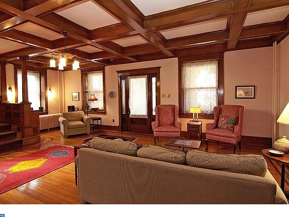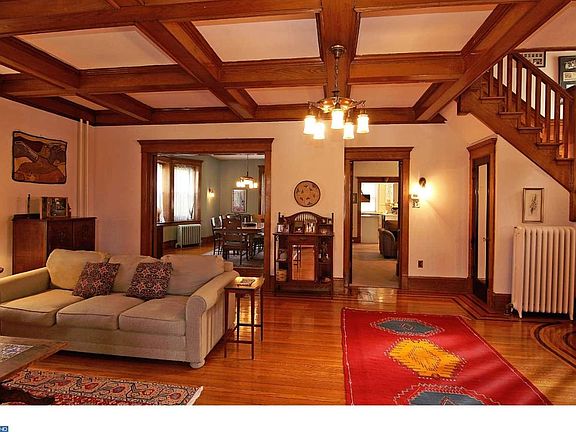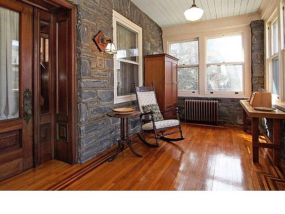 Here's that beautiful Narberth home you've been waiting for. This 112 year old all-stone colonial has the original details kept in great condition by the first two owners (you will be only the third owner). Some of those details are a classic cherry wood coffered ceiling in the living room, a turned main staircase with oak wainscotting & post, beautiful pocket doors separating the living & dining rooms, vintage mahogany china closet with amazing woodwork, 3 colorful leaded stained glass windows, oak floors with intricate mahogany trim, period lighting fixtures, triple closet made of birdseye maple, original oak window frames with dental molding and more. Enter the large & heated enclosed porch with its wood ceiling and oak & mahogany inlay floor. The original oak door with glass sidelights leads you to the great living room. There's a large area to the left, a charming sitting area to the right and the beautiful turned staircase. Through the pocket doors is the formal dining room that easily seats 8 and features a stunning bay window and amazing wood trim throughout. The central family room is accessed from the dining room, living room or kitchen. It features another bay window & charming back staircase. The family room opens to the kitchen offering white cabinets, stainless & black appliances and ceramic tile back splash. There's a mudroom off the kitchen and a connecting half bath. The back door leads to the long private drive & garage. The 2nd floor has 4 big bedrooms. The hall bath has classic white subway tile walls, period sconces & a leaded stained glass window. The master bedroom has a closet room that can easily become a private bath + closet. The front bedroom has the birdseye maple triple closet . The 3rd floor features a charming balcony atop the stairs. There are 2 more bedrooms and hall bath, PLUS 5 storage attics - one main room in the rear, another housing a central air handler, one in the 6th bedroom & 2 in the 5th bedroom. The basement was once used as a professional office and has an entry off the driveway, a waiting room (possible music room), and another large finished room with many uses. There is a heater & additional storage room, a big laundry room, another half bath and access to the back yard...and a hidden room. In addition to all the amazing charm, this home has new wiring (no knob & tube), central air installed 2014, oversized copper gutters and a tile roof. Come make this your great new home in Narberth.