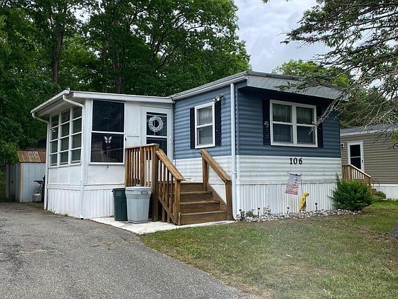 Welcome to Pinewood Estates. Lovely 2 bedroom 1 bath home nestled amongst trees. Enter into an enclosed porch to use as an added space to enjoy some peace and quiet. Lovely open eat in kitchen with lots of sunshine and a great family room. Home includes a shed for storage, a side door deck, central Air, 2013 all new appliance , Furnace rebuilt 2 years ago, HWH 1 year old and a New roof. Enjoy the clubhouse and inground pool. Monthly events to enjoy.