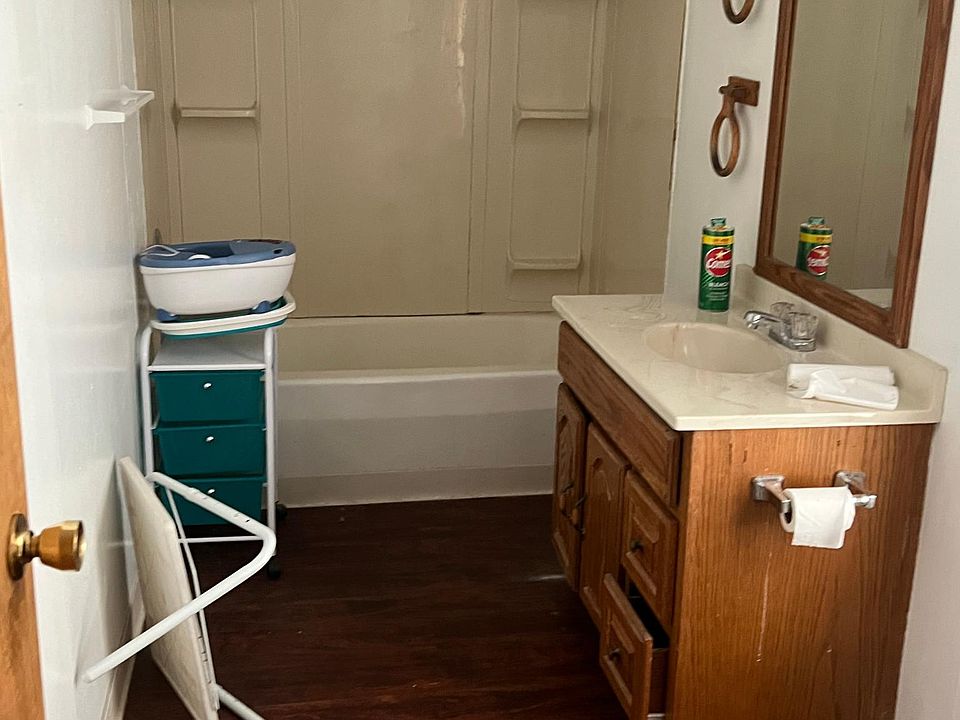 One floor no steps One large bedroom plus a study Laundry hookups Tenant pays electric trash gas Unit is best suited for one person. Maximum two