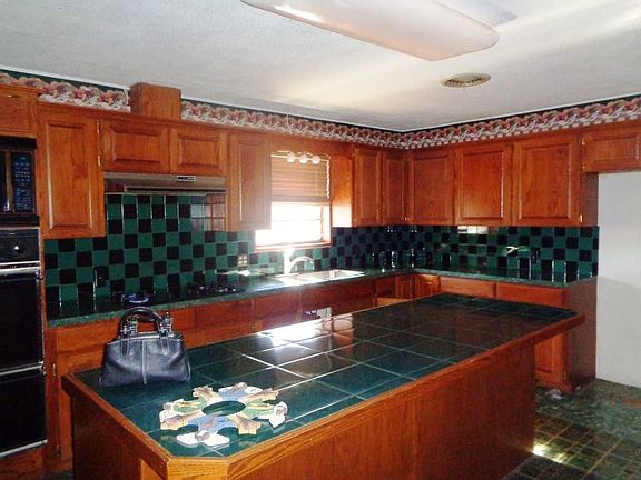 Adorable traditional brick home in Poteau OK. This home features 3 beds/1 bath, kitchen with built-in range & double oven, microwave and dishwasher, ceramic tile counter top island with breakfast bar, dining area, service area, CH/A, storage building, and fenced backyard. Property sold as-is.