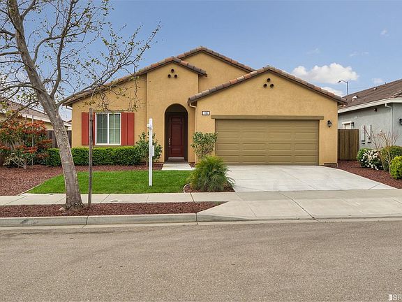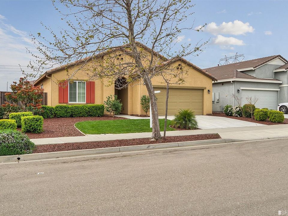 Impressive and modern with abundant natural light throughout, this 3 bedroom, 2 bath home is not to be missed. The beauty of this property begins at the curb: the newly landscaped, manicured front yard is an oasis all its own, with a lush lawn is surrounded by neatly trimmed hedges, trees and shrubs. A tiled, peaked roof, red shutters and a graceful arched entry lend charm and whimsy to the delightful exterior. Inside, the welcoming, beautifully tiled foyer opens into rooms in all directions: two large, tranquil bedrooms with plentiful storage; an updated full bath with soaring ceilings, a vanity and fine fixtures; a laundry room tucked away behind frosted glass doors, and a 2-car garage. The spacious, open-plan living room is the heart of the home, with an expansive seating area embraced by windows overlooking the greenery outside. In the dining area, sliding glass doors lead to a generous backyard with a paved, partially covered patio, planted grass and shrubbery.