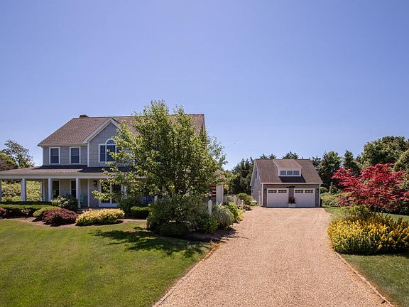 Modern farmhouse with sweeping views of Bittersweet Farm. This handsome home lives like it's brand-new. It has been immaculately maintained since being built (with some renovations done in 2013). There is over 2600 sq ft of living space in the main house, and when you add the huge amount of deck space, the usable space expands to 5200 sq ft. In addition to the master bedroom suite and two large guest bedrooms plus an office with lovely views of Bittersweet Farm, there is a detached bedroom above the garage. The property has already been connected to Town sewer so one can expand to 6 bedrooms in total. The location on Clevelandtown Road is convenient to both Edgartown Village and South Beach, and it's also a short distance away from everything Morning Glory Farm has to offer.