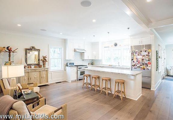 This beautiful Cliff Road property is tucked off Cliff Road down a winding shell driveway and offers privacy, high-end amenities, comfort, and convenience to the Cliff Road Bike path, North Shore Beaches, Westmoor, and Town. The house features an open floor plan with 9' coffered ceilings, a gourmet kitchen with thick stone counters, 6 burner Wolff stove, Subzero refrigerator, eat-at island, sitting area, dining, and living room with wood-burning fireplace and French doors to a spacious deck with pergola, patio, mature gardens with fruit trees, and hedged in yard. The 5 bedroom suites are all comfortable in size. This house is meticulously maintained and in turn-key condition. Room for private pool. Furniture package available for immediate occupancy.