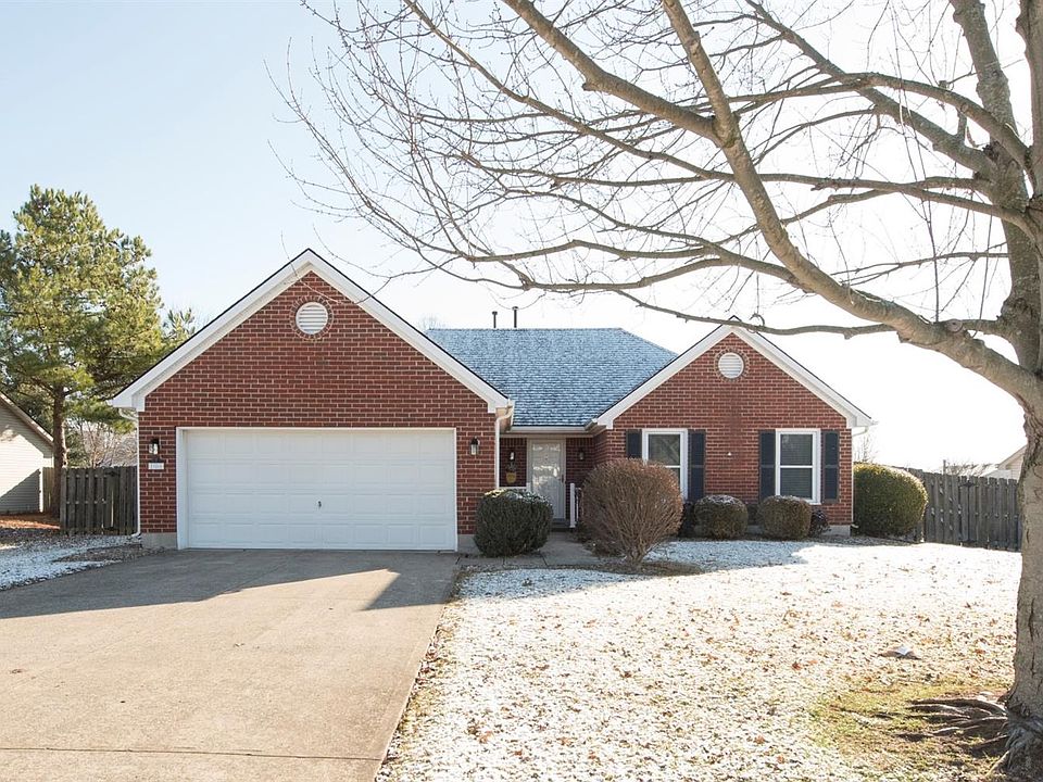 Great Ranch style home offering 3 bedrooms and 2 full baths plus a 2 car attached garage. The Master bathroom has been updated with tile flooring, tiled shower, glass door ,and its gorgeous! All bedrooms are complete with walk in closets. Storage in attic with pull down stairs. Large fenced yard features covered patio, beautiful landscaping, and a spacious shed for gardening, storage, or perfect for a work shop! This home is conveniently located just a short distance to Frankfort, Versailles and Lexington. This home is immaculate and wont last long!!!!!