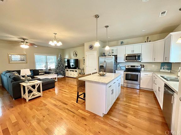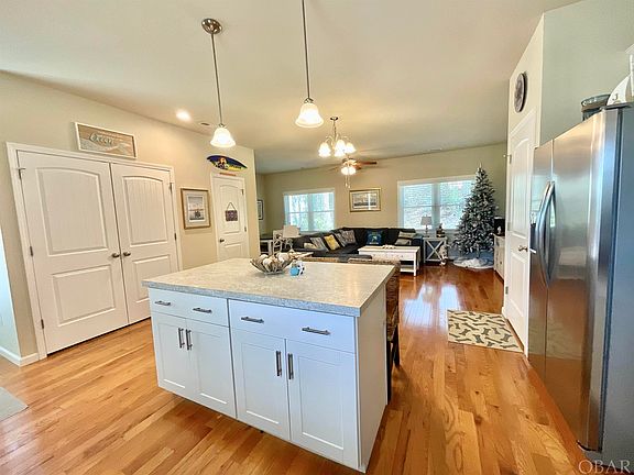 Welcome to 106 Colington Drive located in the thriving boating community of Colington Harbour. You will stumble upon this sweet southern gem just beyond the secured gated entrance. This home is bright and sunny with an open concept floor plan. Kitchen, dining, great room, powder room and laundry on the 1st floor. 2 Bedrooms, full bath and Ensuite with spacious walk-in closet and private bathroom on 2nd level. Beautiful and timeless oak floors throughout the downstairs, stainless steel appliances, a convenient outside shower for those sandy beach days, storage/workshop, and an extra gravel pad adjacent the paved drive for easy turn around. Nice deck for outside living, people watching or soaking up the summer sun.  Colington Harbour offers a sound side beach & park, playground, boat ramp, boat slips for rent, basketball court, designated beach for dogs and a dog park. For an additional small fee, residents can join the yacht & racket club. Close to public beaches, the best fishing, schools, library, health care, dining & shopping and all the Outer Banks has to offer. Perfect for primary, second home or investment property. Call today a schedule a tour.
