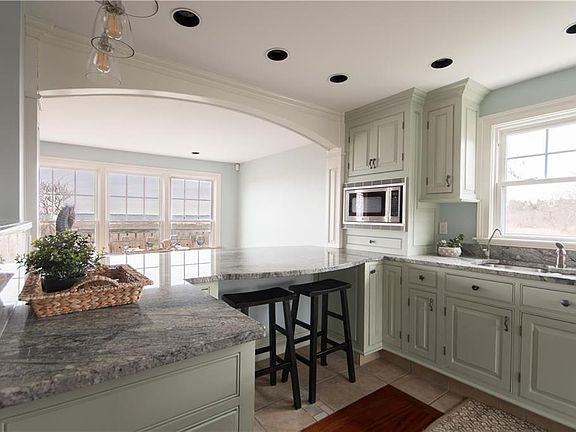 PRICE IMPROVEMENT! BE IN FOR SUMMER! This updated home situated on a large corner lot with unobstructed sweeping water views of Mount Hope Bay. The spacious sun filled interior boasts many custom details including Brazilian cherry hardwoods throughout with a custom inlaid compass rose, updated bathrooms and a newer septic installed in 2016. The custom kitchen is perfect for those who love to cook and entertain. Gorgeous custom cabinetry utilizes every inch of the space.Enjoy working with high end stainless appliances, custom granite countertops and a custom cozy two seat breakfast nook for reading the paper & having the first cup of coffee. Beach access is directly across the street and there are water views from almost every window in the house. This spectacular home is meant for entertaining with its oversized back patio and fenced-in yard waiting for BBQ's and summer fun! Two car detached garage allows for plenty of parking. The finished basement includes a large informal space, laundry room and 3 cedar closets for extra storage. There is also an established mooring in front of the house. Common Fence Point is a desirable neighborhood that offers a community center, boating and swimming, marina, golf course and easy access to the highway and the rest of Aquidneck Island. This home is move in ready and ready for summertime fun!