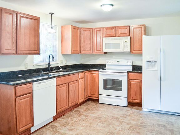 - Kitchen: Counter Tops-Granite, Cabinets-Natural, Floors-Vinyl