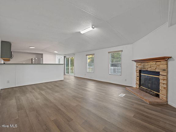 This 3-bedroom, 2-bath home sits on just under half an acre in a peaceful rural setting and features numerous recent updates, including new flooring and fresh paint throughout. The open floor plan provides a seamless flow between the living and kitchen areas, highlighted by a cozy fireplace that adds warmth and character to the space. The kitchen is equipped with brand-new cabinets and appliances. The guest bathroom offers a new vanity and a refinished shower/tub, while the primary suite bathroom has a walk-in shower. The primary bedroom is located on the opposite side of the home from the two additional bedrooms, providing added privacy. The new sliding glass doors lead to the back deck, perfect for relaxing or entertaining outdoors. Don't miss out on this affordable property with plenty of privacy with no HOA, yet conveniently located minutes from major highways.