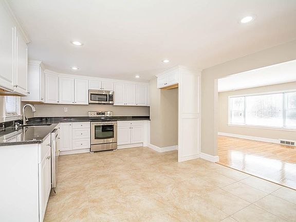 Over 3200 square feet of living in this remodeled Colonial with attached garage. Home features brand new kitchen with recessed lighting and stainless steel appliances, granite counters and tile flooring with room for an eat-in area. Large dining room with recessed lighting big enough to accommodate a large family. First floor also features a full bath and a family room with fireplace and built-ins and a half bath nearby. Enormous Master with walk-in closet and skylights. Second floor also has a bonus room and a full bath. Home is equipped with two heating systems for energy efficiency. If you've got a large family and need a first floor bedroom for the in-laws this house is perfect for you as you would still have six other bedrooms to choose from.