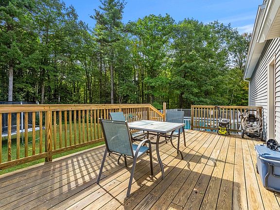 Experience country living in a picturesque neighborhood! This impressive Colonial sits on a one-acre lot, featuring a spacious deck and paver patio with serene woodland views. The open floor plan fills the home with natural light, offering plenty of space for relaxation and entertaining. The gourmet kitchen includes stainless steel appliances, a large island, and ample cabinet space. Gleaming hardwoods flow throughout, including oak stair treads on the central staircase. The living room, with its brick fireplace and wood-burning pellet stove, leads into a cozy study with custom built-ins. The expansive family room boasts a soaring cathedral ceiling, French doors, and a slider to the deck. Garage is a mechanics dream. The master suite features a full bath and walk-in closet. Enjoy an oversized two-car garage and a driveway that fits up to 14 cars. Priced just under similar homes, you get more bang for your buck—and you're just minutes from major highways!