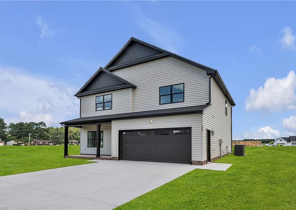 Why wait to build? This stunning new construction is move-in ready! Nestled on a spacious half-acre in the sought-after Keeter Barn Landing community, this beautiful 2-story home offers high-end finishes throughout, including Santa Fe-style doors and seamless gutters. Step from the covered front porch into a welcoming foyer that leads to a flexible space—perfect as a home office, dining room, or playroom. The open-concept great room flows into a stylish eat-in kitchen featuring granite countertops, professional-grade cabinets, a center island, walk-in pantry, and a stainless steel appliance package with range, microwave, and dishwasher. Upstairs, the spacious primary suite includes a large walk-in closet and spa-like bath with soaking tub, tiled shower with glass door, and dual vanities. A convenient second-floor laundry room adds everyday ease. Located just minutes from Elizabeth City, Hampton Roads, and the OBX. Schedule your tour today—your dream home awaits!