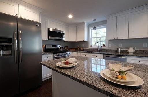 Experience a beautiful top-to-bottom renovation for single level living. New everything except the frame. Trending interior design with wood and stone. 2 Bedrooms. Kitchen with granite countertops and stainless steel appliances and gas stove for your culinary creations. Great for having guests. Eat-in kitchen or enjoy your meals on your private 10 x 10' deck. Bright and sunny open concept interior. Finished and insulated basement with storage area, has endless possibilities, and style, with trending tinted cement floor. Energy efficient Rinnai wall furnace with tankless water heater, along with energy efficient HERS rating of 63 and excellent low blower test of 3.63 will keep your energy bills enviably low! One-car insulated garage with access to main floor. All this, and no worries about Title V because it's been tied into town sewer (betterment has been paid). This won't last!