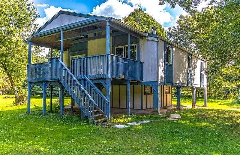 Beautiful country retreat on a private lane outside Historic Harmony District. Close to award-winning Seneca Valley Schools. A peaceful and quite location, but has all the conveniences that Harmony and Zelienople have to offer. A park-like flat and level lot. Open floor plan with hard wood flooring. Stone log burning fireplace with gas starter. Walk out to private balcony off the master bedroom. Large 23x12 private deck with beamed ceiling. Large 29X18 garage/workshop and a carport. Close to major interstates, shopping & restaurants. Home Warranty provided. This property is offered with adjoining 2.96 acre lot for a total of 3.6 acres.