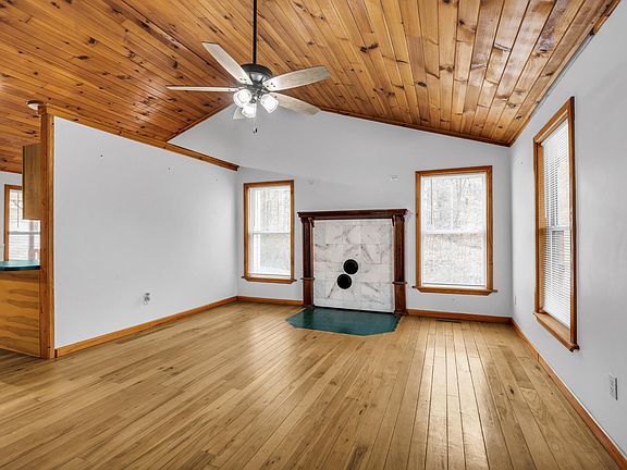 This three bedroom, two bathroom home boasts privacy and beauty with its 6.38 acres of land including a small pond. Enjoy stunning views from the porch and open feel inside. The living area features a vaulted ceiling and hickory hardwood floors which extend into the kitchen with custom hickory cabinets. There is an attached room off the master bedroom which could be used as an office or nursery. Schedule your showing to see how lovely this home is in person!