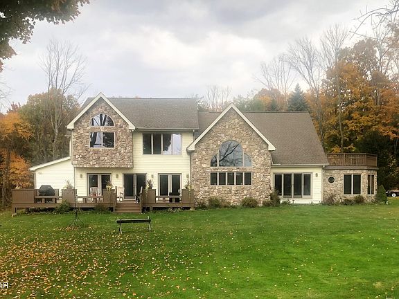 Spacious custom built 4 bedrooms, 2 1/2 bath contemporary...situated at the end of a cul de sac on an acre with incredible sunsets viewed from the deck...this home features an impressive foyer leading into the Living Room with built-in shelving and cabinets, propane fireplace...continue through the pocket doors to the Kitchen with granite counters, an island and plenty of windows and cherry cabinets...onto the Formal Dining Room, sunroom and guest wing with 2 bedrooms and a full bathroom...main level also includes additional bedroom, powder room and laundry room...custom staircase leads to the second floor...go to the left for recreation room with pool table or use for additional sleeping, possibilities are endless...also find the master suite with exercise room, massive closet, office with, Beds Description: 1 BED 2nd, Beds Description: 2+Bed1st, Beds Description: 1 BED 2nd, Baths: 1 Bath Level 1, Baths: 1 Bath Level 2, Baths: 1/2 Bath Lev 1, Eating Area: Formal DN Room, Eating Area: Modern KT