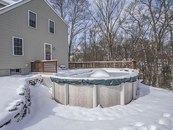 Cape Home in Cul-De-Sac Neighborhood, 3 Bedrooms, 1.5 Bath. This home is set far off the street with a large lot - 1.66 acre, room to entertain and enjoy the privacy of your yard. Above ground pool with deck to spend the summer relaxing. The first floor has an open concept as you walk in the front door to the living room which is open to the dining area and kitchen. Dining area has a slider to the rear deck and is open to the kitchen area which has an island large enough for working while entertaining or eating. There is also another room which could be a formal dining room/family room/office, whatever you need. First floor half bath. Second floor has large master bedroom with two closets, 2 additional good size bedrooms and a full bath. If you need more space, the walk out basement is ready to finish! Would make a great family or play room. The roof was replaced in 2015.This home has central air conditioning, town water/sewer and vinyl siding.