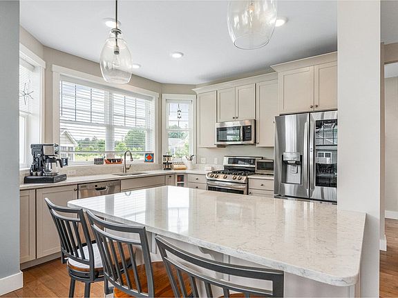 Move right into this stunning, bright, end-unit Townhome in Williston's Creeks Edge neighborhood. Formerly the model in the development, it features all of the bells and whistles. The beautiful first floor is filled with an abundance of light and showcases the primary bedroom suite, cook's kitchen with island, gorgeous quartz counters, custom cabinets and lighting, upgraded stainless appliances, large dining area, and lovely fire-lit living room with vaulted ceilings that opens to the back deck and patio overlooking the spacious common land. On the second floor you'll find a perfect loft and an additional light-filled bedroom and full bath. The lower level features a huge family room, office, spacious bedroom, and an enormous unfinished storage area. Beautiful window treatments throughout, attached two-car garage, a wine refrigerator, and more to boast about with this wonderful home. There are two different direct access points in the development to Williston Town trails. Enjoy all that Williston has to offer including Catamount Family Center, Maple Tree Place, Concerts on the Green, Tafts Corner shopping, and many restaurants. Move right in and make this home your own!