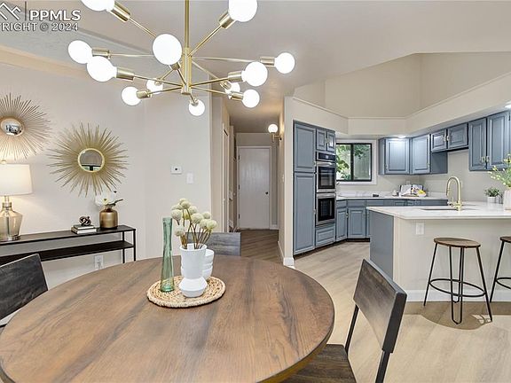 This inviting townhome sits gracefully along the scenic Cheyenne Creek. Enjoy relaxing on a private newly rebuilt deck, serenaded by the gentle sounds of the stream. Step inside to discover a fully renovated interior that highlights relaxation and style. The living spaces are filled with natural light, creating a warm and welcoming atmosphere. Generate a cozy atmosphere in the walk-out living room with its brick-surround fireplace. The updated kitchen boasts a two-story ceiling with skylight, new stone counters, all new appliances, and a skylight. Vinyl plank flooring makes for easy cleaning on the main level, while brand new carpet provides comfort through the upper level. French doors open to the primary bedroom with a vaulted ceiling, built-in desk/vanity, and window overlooking the creek. Whether looking to enjoy a peaceful walk by the creek, explore nearby cultural hotspots, or need quick access to major highways, this townhome is a perfect fit. Located near the historic Broadmoor Hotel and the vibrant Ivywild School, this unit offers the perfect blend of tranquility and convenience. With seamless access to the I-25 corridor, commuting and exploring the local area are a breeze.