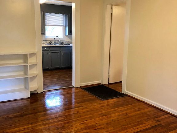 Convenient to downtown. Remodeled one bedroom, one bath garage apartment. Freshly painted throughout. Updated bath with newer shower surround, vanity and toilet. Kitchen includes newer countertops. Refrigerator and stove are included. Washer and dryer hookups in kitchen. Beautiful hardwood floors in den and bedroom. Adequate parking spaces. This is a no pet property. Garage is not included. Renter is responsible for all utilities, water, and yard maintenance. No smoking and no pets.